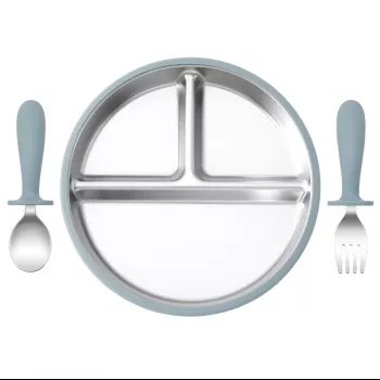 3-Piece Stainless Steel Baby Dinnerware Set with Plate, Fork & Spoon