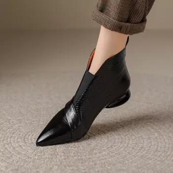 Genuine Leather Pointed Toe Wedge Ankle Boots – Mid Heel Zip-Up Winter Shoes