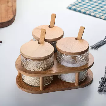Hammered Glass Seasoning Box & Bottle Set with Tray – Elegant Kitchen Organizer